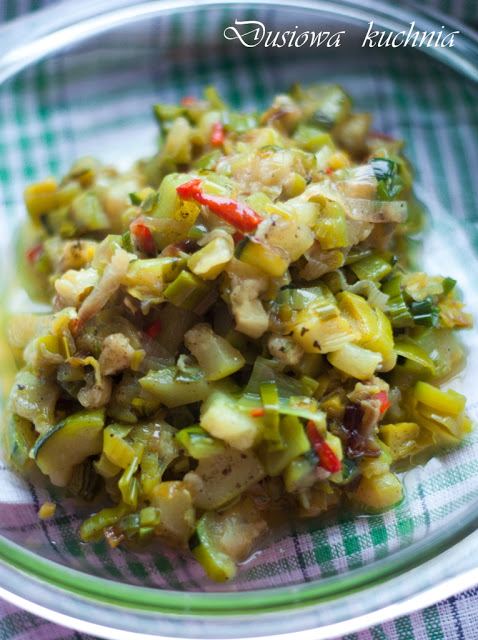 Do rondla przełożyć jabłka i dodać cukier - gotować całość razem, co chwilę mieszając około 5-10 minut aż jabłka zmienią kolor, wtedy dodać cynamon i jeszcze chwileczkę mieszać, a potem zdjąć z ognia.
