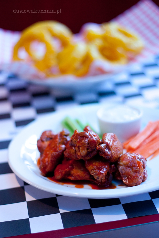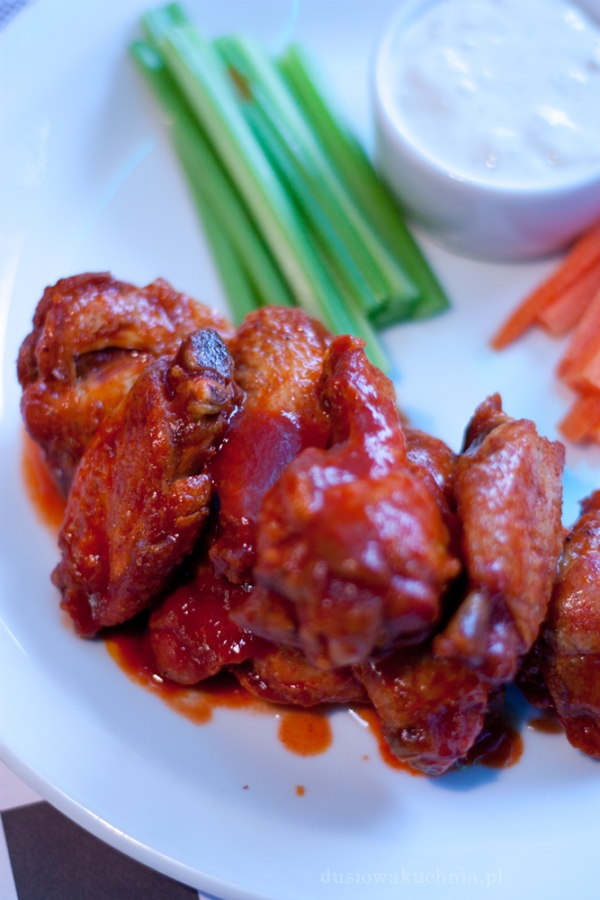 Postanowiliśmy sprawdzić też pikantne skrzydełka w sosie luisiana za 16 zł, które podano w towarzystwie sosu ze świeżymi warzywami, marchewką i fenkułem (a może jednak selerem naciowym:) ), które przyjemnie łagodziły pikantność. Same skrzydełka o smaku słodko-kwaśnym, specyficznym, dosyć dobre, choć nie tak soczyste, jakbyśmy chcieli. Za to porcja zdecydowanie solidna!