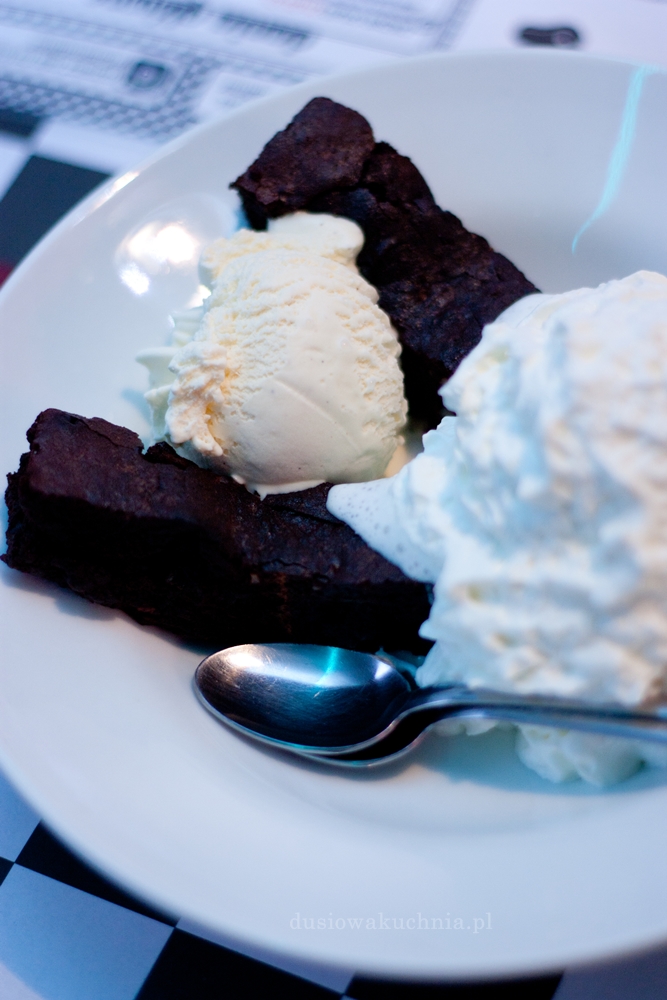 Co można wybrać na deser? Oczywiście pancakes i milkshake, ale nie zabrakło także czekoladowego ciasta z lodami i bitą śmietaną – totalne szaleństwo za 14 zł.