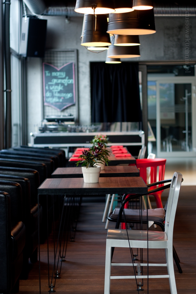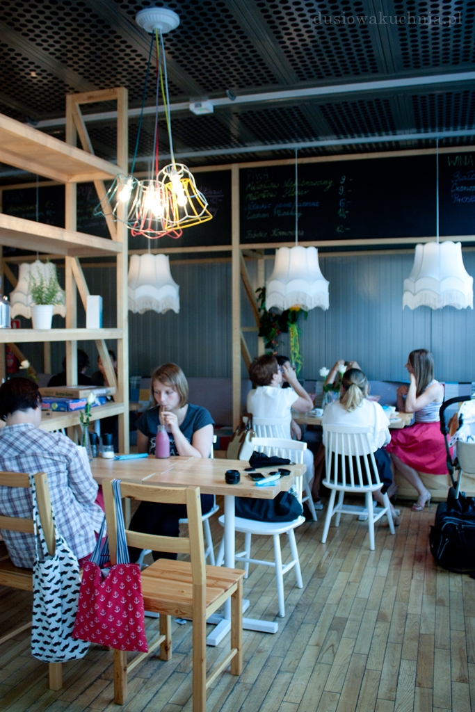 Restaurację urządzono w lekki i klimatyczny sposób, są nastrojowe lampy z abażurami, krzesła stylizowane na retro, wygodne kanapy, dominuje drewno i światło, które wchodzi przez duże okna, obok których zdecydowano się na barowe krzesła. W Chwili znajdziecie kolorowanki dla dzieci i gry planszowe.