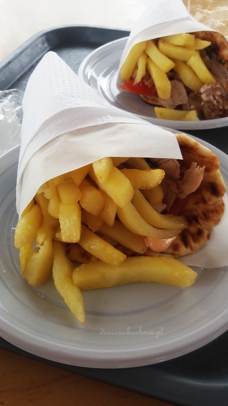 2. Souvlaki – czyli greckie szaszłyki, o kurcze jakie to było dobre! Z mięsa wieprzowego lub kurczaka w aromatycznych ziołach albo serwowane w picie razem z frytkami. Wiele miejsc serwuje też doskonałą jagnięcinę – w naszym hotelu mięso często było delikatnie doprawiane cynamonem, co mi niestety kompletnie nie pasowało, ale wiem też, że miało wielu fanów.