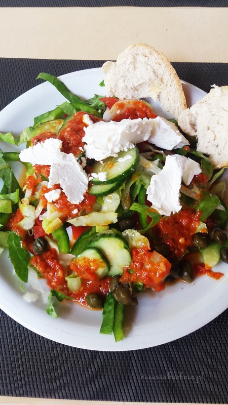 1. Sałatkę grecką – która zupełnie nie przypomina tej „polskiej greckiej sałatki” , a jest genialna! Nie było dnia, w którym nie zajadałam się soczystymi pomidorami, papryką i ogórkami w towarzystwie najlepszej ever fety! Do tego całość polana oliwą i byłam w niebie, mogłam to jeść na śniadanie, obiad i kolację 🙂 to idealna sałatka na upały.