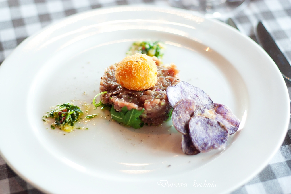 3. Tatar z wołowiny podany ze smażonym jajkiem i truflami.