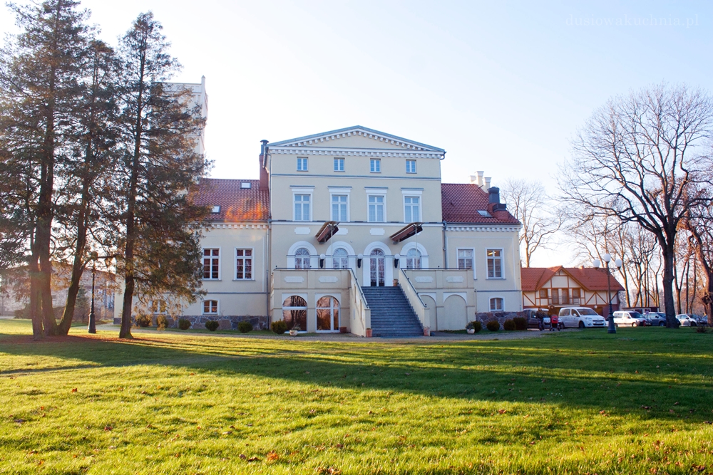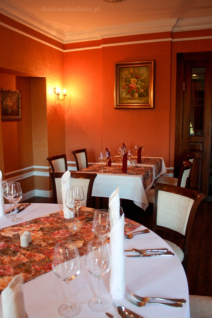 Okazuje się, że przeznaczenie pomieszczeń w pałacu jest bardzo podobne, jak lata temu. I tak w miejscu dzisiejszej restauracji była kiedyś jadłodajnia. Restauracja hotelowa jest niezwykle elegancka, pałacowa, taka na bogato! Składa się z dwóch sal, tarasu i ogródka letniego. W menu dominują dania z kuchni staropolskiej i śródziemnomorskiej, niebawem będzie dostępna wkładka dla wegetarian i bezglutenowców. Mam nadzieję, że za jakiś czas uda mi się pokazać Wam serwowane dania (w kolejnym wpisie będzie też pokazane śniadanie hotelowe). Idealne miejsce na romantyczną kolację, eleganckie przyjęcie czy biznesowe spotkanie.