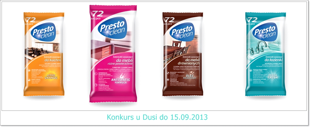 Zapraszam na konkurs z marką Presto Clean, w którym do wygrania są 3 zestawy nagród, a w każdej z nich znajdą się 4 rodzaje ściereczek, m.in. do kuchni, które usuwają uciążliwe zanieczyszczenia.