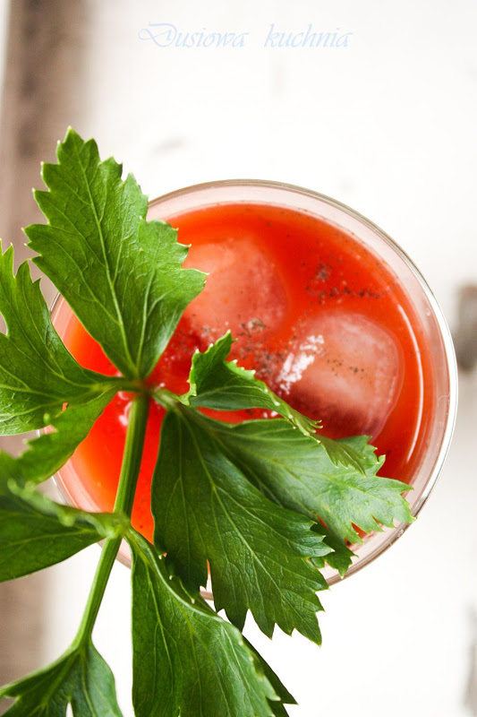Ozdobić selerem naciowym i dodać kostki lodu.