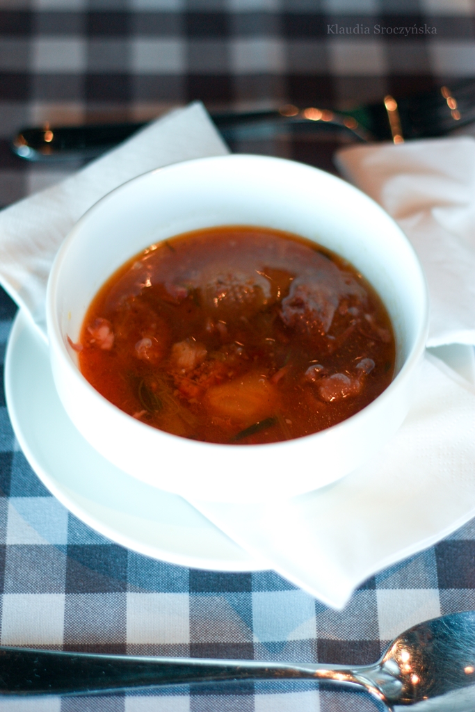 Do 15 grudnia restauracja bierze udział w akcji „Czas na gęsinę”, dlatego zaserwowano zupę na gęsinie.
