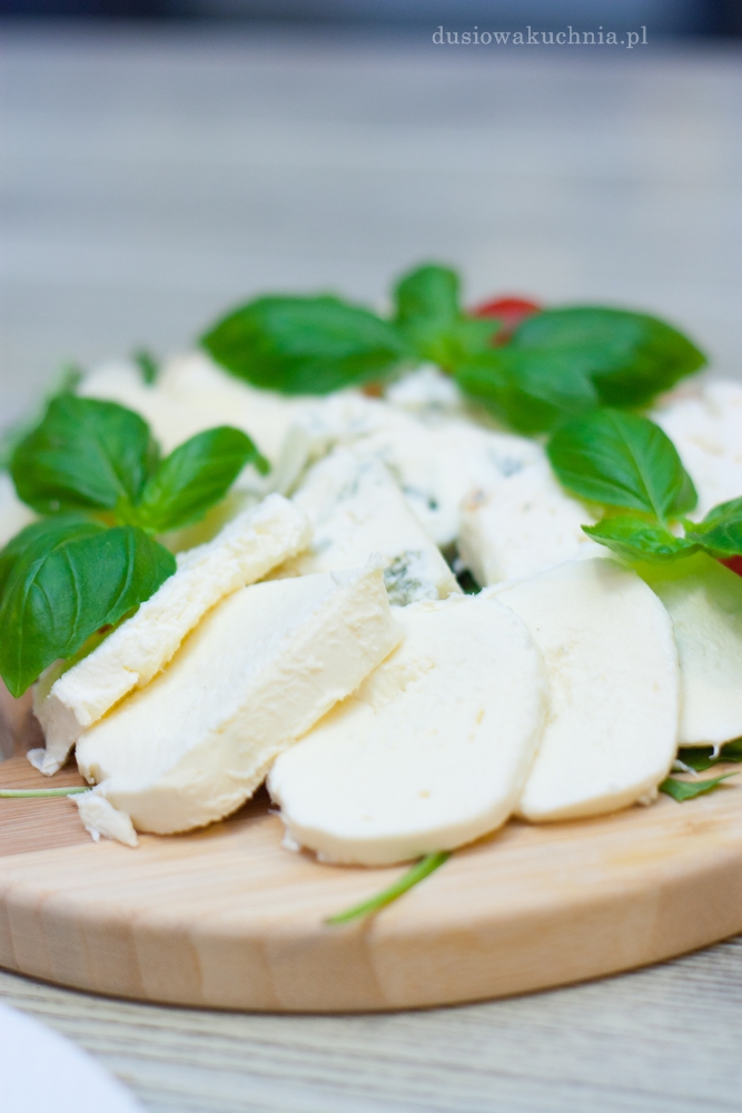 Na przystawkę wybraliśmy deskę serów za 49 zł. Na niewielkiej desce zmieściło się naprawdę bogactwo różnych serów m.in. mozzarella, gorgonzola czy talleggio. Chętnie na takiej desce zobaczylibyście jakieś orzechy albo konfiturę do serów.