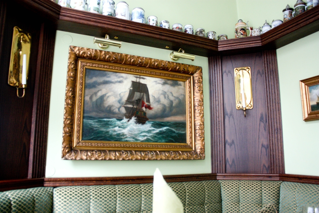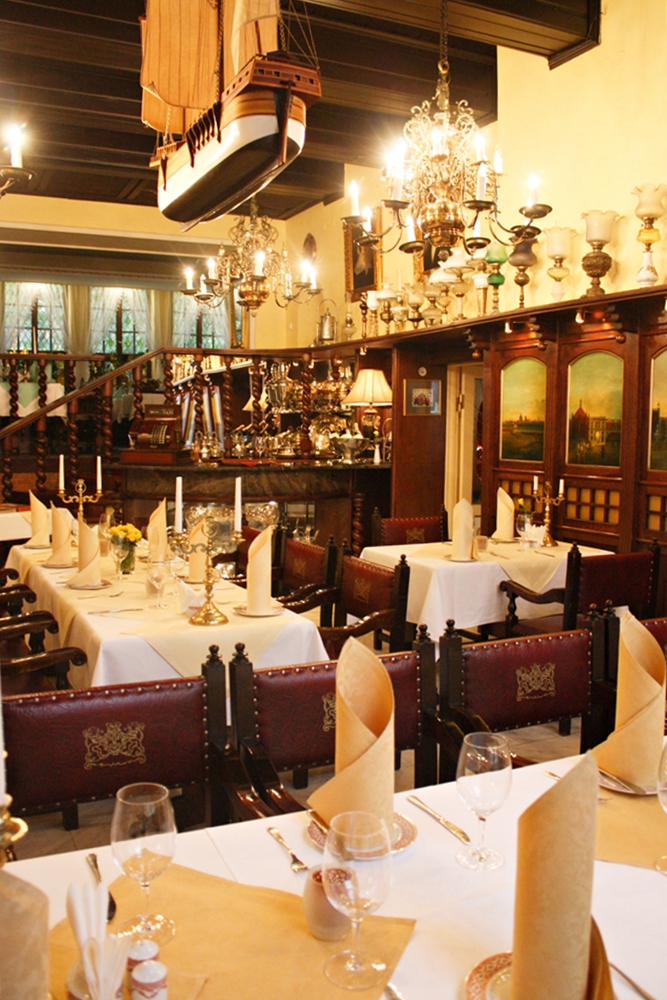 Największym atutem zaraz za smakiem jest bogato zdobione wnętrze lokalu, odrestaurowany XIII w. rokokowy hall i sale pełne zabytkowych przedmiotów, obrazów i zbieranych kolekcji. Do wyboru są trzy klimatyzowane sale, na różnych poziomach. My wybraliśmy miejsce, które zapewnia największą prywatność, w jakby oddzielnym pokoiku zamykanym drewnianymi drzwiami z mosiężną klamką, jednak kelnerzy z należytą uwagą doglądali, co jakiś czas, czy czegoś nam nie brakuje.