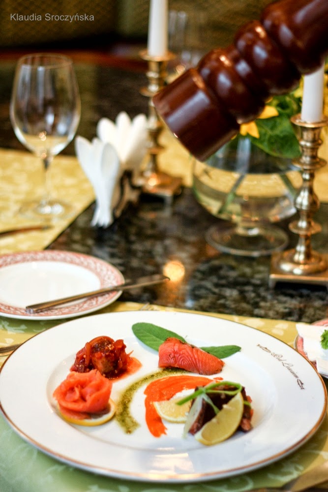 Restauracja Pod Łososiem to bardzo prestiżowe miejsce z niesamowitym klimatem i doskonałymi smakołykami. Restauracja jest bardzo elegancka, idealna na romantyczną kolację (dlatego ja wybrałam się z moim Ukochanym), ale także na spotkania biznesowe. Historia tego miejsca jest wielopokoleniowa i rozpoczyna się od 1598 roku, kiedy to Ambroży Vermollen założył tutaj gospodę o nazwie „Der Lachs” (Łosoś) i wytwórnię likierów (najsłynniejszym była złota woda Goldwasser). Po wojnie Gdańszczanie lokal odbudowali i od 1976 roku o lokal z tak długą historią, z wyjątkową dokładnością dba rodzina Robakowskich.