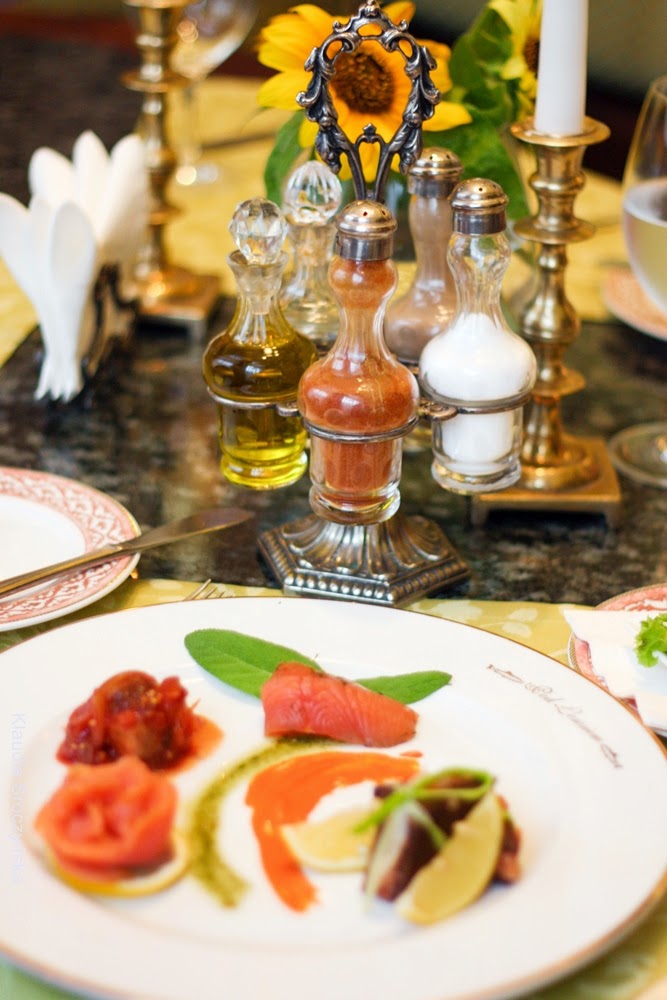 Chciałabym jeszcze wspomnieć w tym miejscu, że restauracja ma własną zastawę stołową z unikalnym łososiowym wzorem, co widać na zdjęciach.