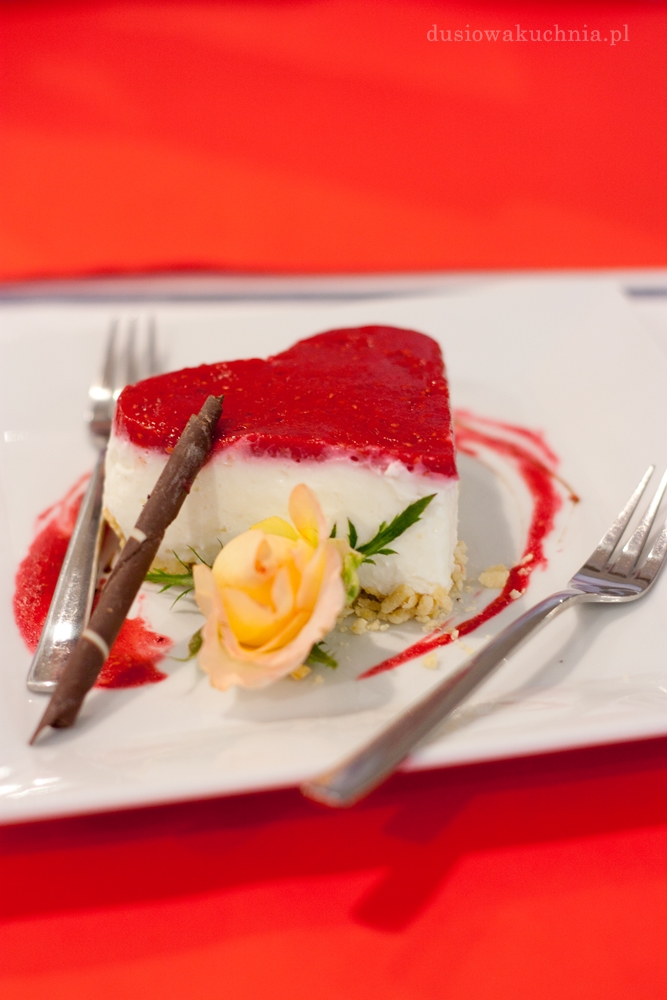 Paweł po golonce nie miał już miejsca na nic innego, ale ja skusiłam się na serniczek na zimno z musem malinowym (8 zł). Można by powiedzieć, że deser był odrobinę fit – nie za słodki, smakował jakby jogurtowo. W pełni mnie nie zadowolił, bo lubię naprawdę słodkie desery. Sos malinowy mógłby być pozbawiony pesteczek, chociaż to w nich najwięcej zdrowia się znajduje.Chętnie widziałabym więcej deserów do wyboru, ale nie narzekam, bo w trakcie naszej wizyty były także dwie imprezy okolicznościowe, więc kuchnia naprawdę się uwijała.