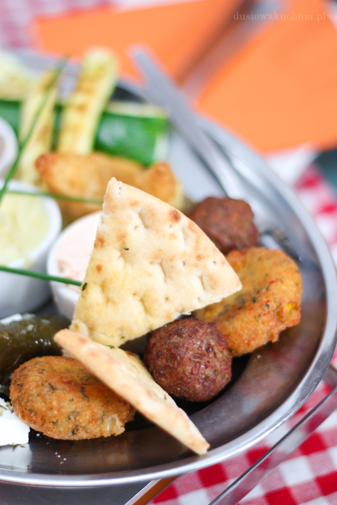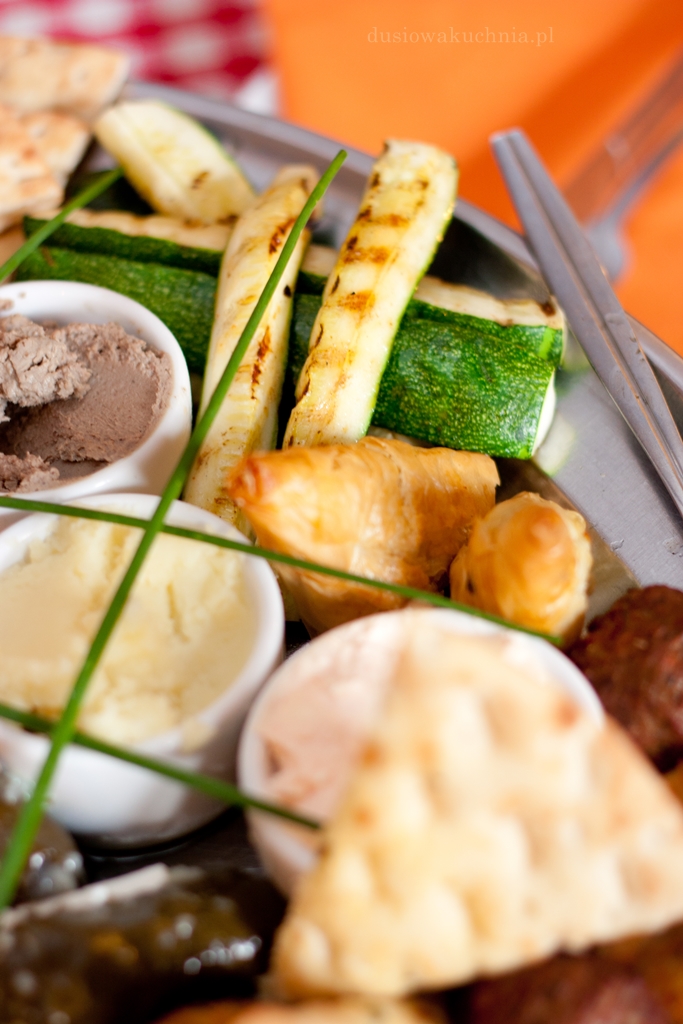 Na początku naszej kolacji zamawiamy specjalną przystawkę dla dwojga za 43,50 zł w skład, której wchodzą same specjalności greckiej kuchni. Przystawka podawana jest na podgrzewaczu.