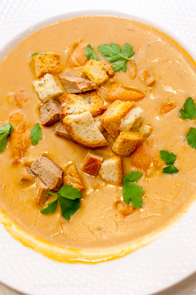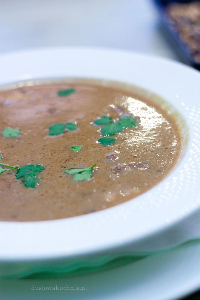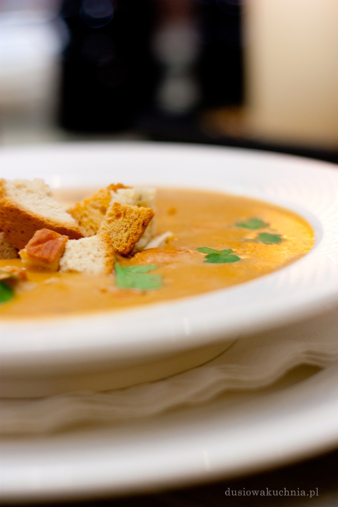 Część zup serwowana jest w stylowych kociołkach – to dosyć spora porcja (550 ml) taka dla dwóch osób. My chcieliśmy spróbować dwóch różnych pozycji, dlatego poprosiliśmy o mniejsze porcje podane na talerzach. Specjalnością miejsca jest pikantna zupa piwna z kurczakiem i bekonem (16 zł). Zupa piwna była aksamitnym kremem, naprawdę pikantnym, który dobrze kontrastował z delikatnym kurczakiem. Chrupiące grzanki z dwóch rodzajów pieczywa idealnie balansowały z kremowością zupy. Kociołek maślakowo-borowowikowy (19 zł) z lanymi kluseczkami to zupa idealnie odmienna do poprzedniej. Pyszna, kremowa, pełna kawałków grzybów i najlepszych kluseczek, delikatnych niczym chmurka – coś wspaniałego!
