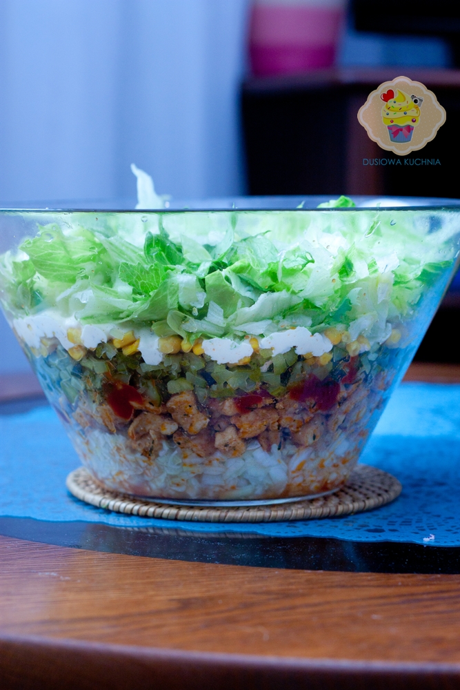 I jeszcze w formie skrótu warstwy sałatki zaczynając od dołu: