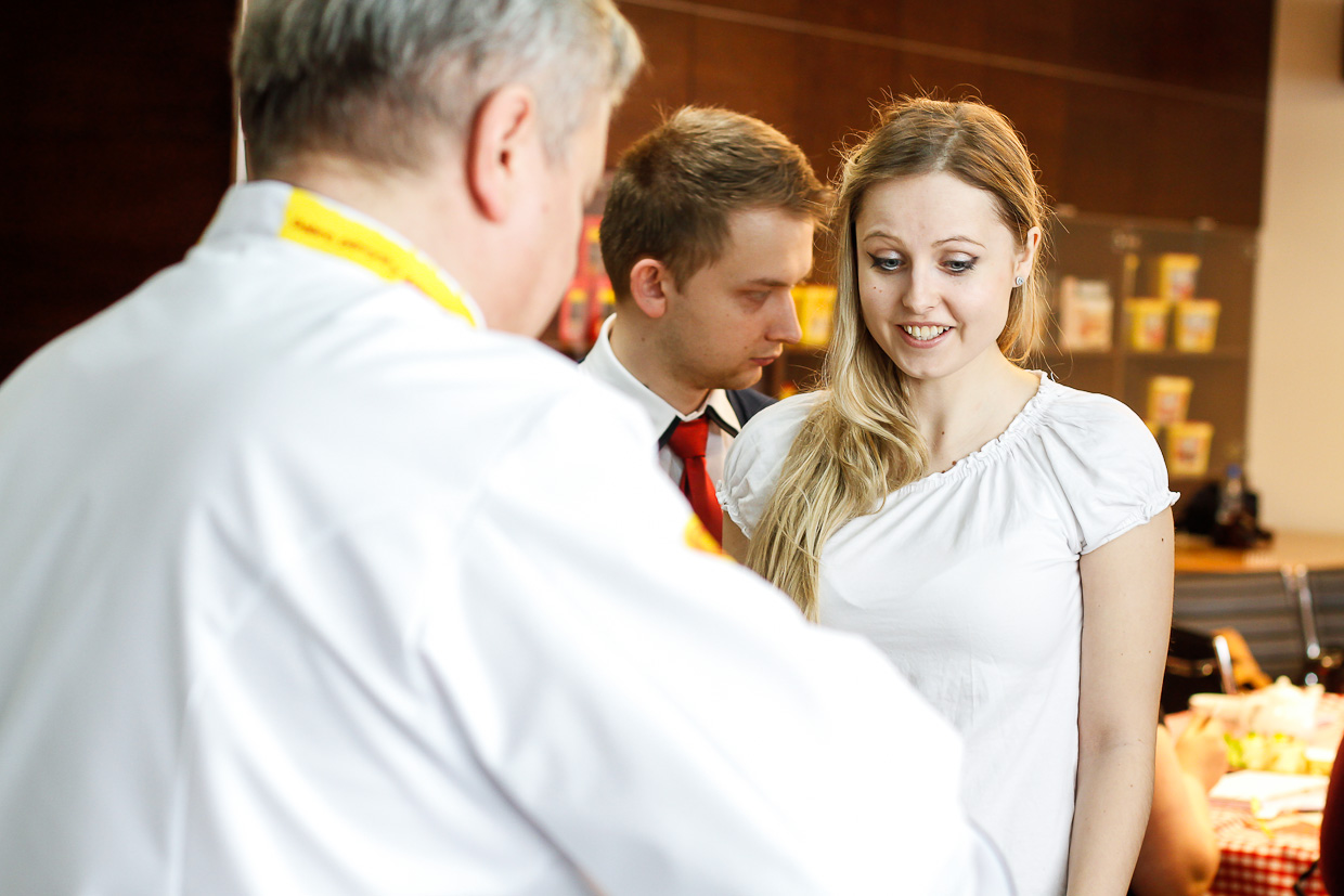 Smażyć do zeszklenia, dodać posiekany czosnek.