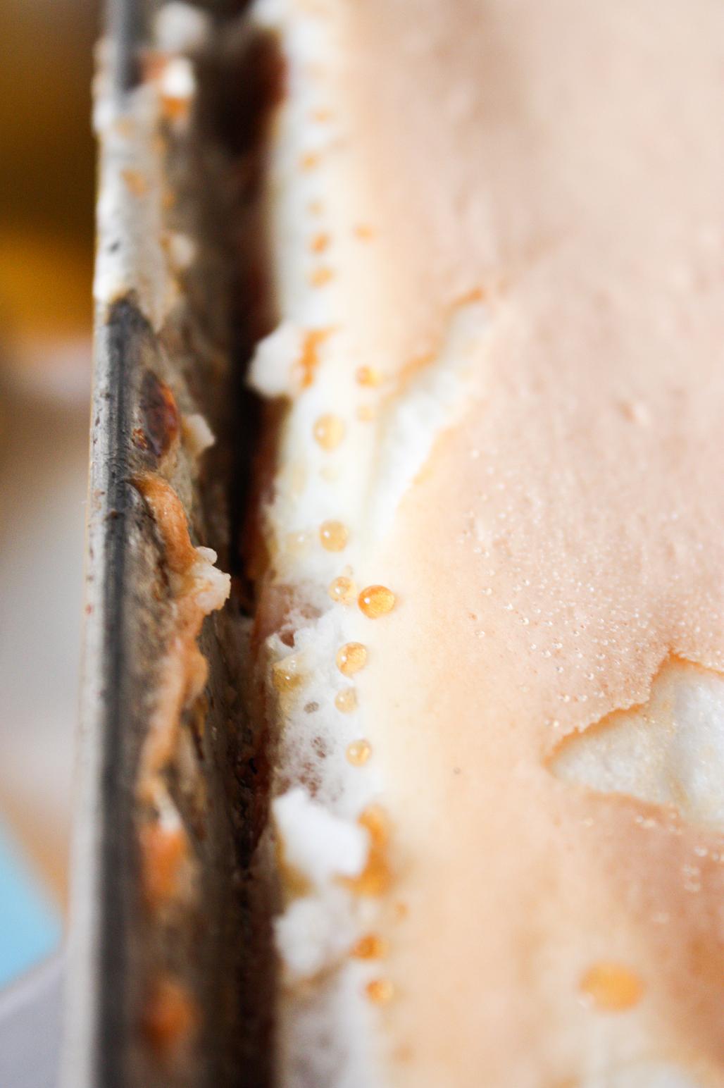 Po 45min pieczenia sernika otwieramy piekarnik i wykładamy pianę na ciasto.