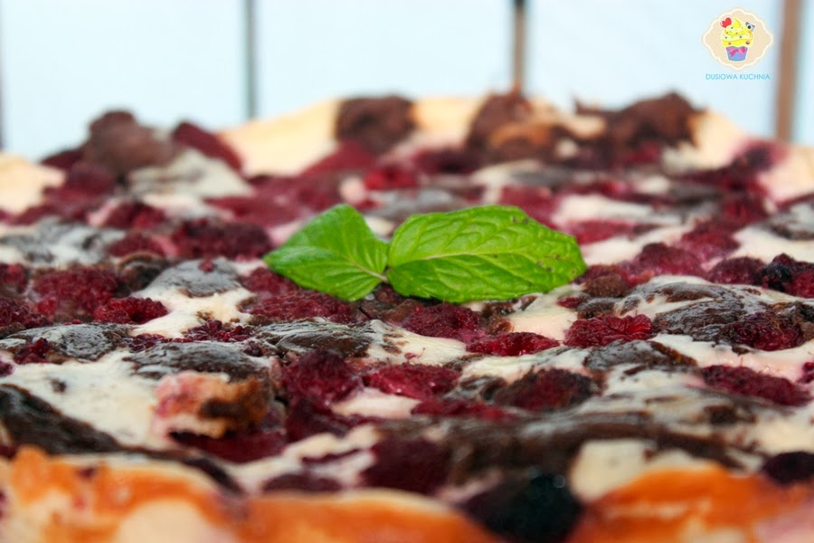 nie mam malin tylko mrożone jagody,ew.brzoskwinie z puszki lub mrożone truskawki,ale wydaje mi się że z jagodami będzie najlepiej…