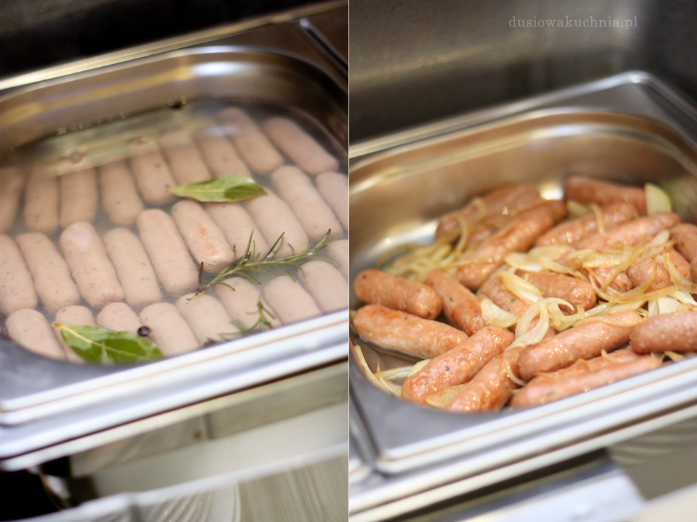 Z dań ciepłych na życzenie można było zamówić jajecznicę np. na boczku lub wybrać z wystawionych gotowanych lub podsmażanych kiełbasek.