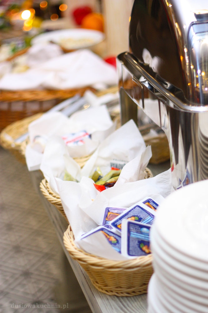 Tak, jak i w karcie menu restauracji pojawia się kuchnia regionalna, tak również na śniadaniu pozytywnie zaskoczyły nas kaszubskie akcenty. Podczas śniadania można było wybierać spośród wielu zimnych zakąsek:
