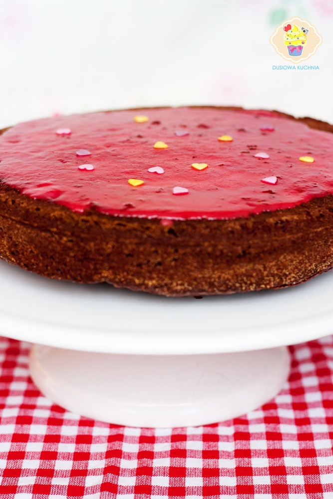 Ciasto odwracam do góry nogami (by mieć płaską powierzchnią na górze) i wylać lukier, ozdobić posypkami.