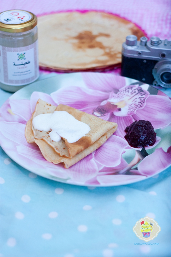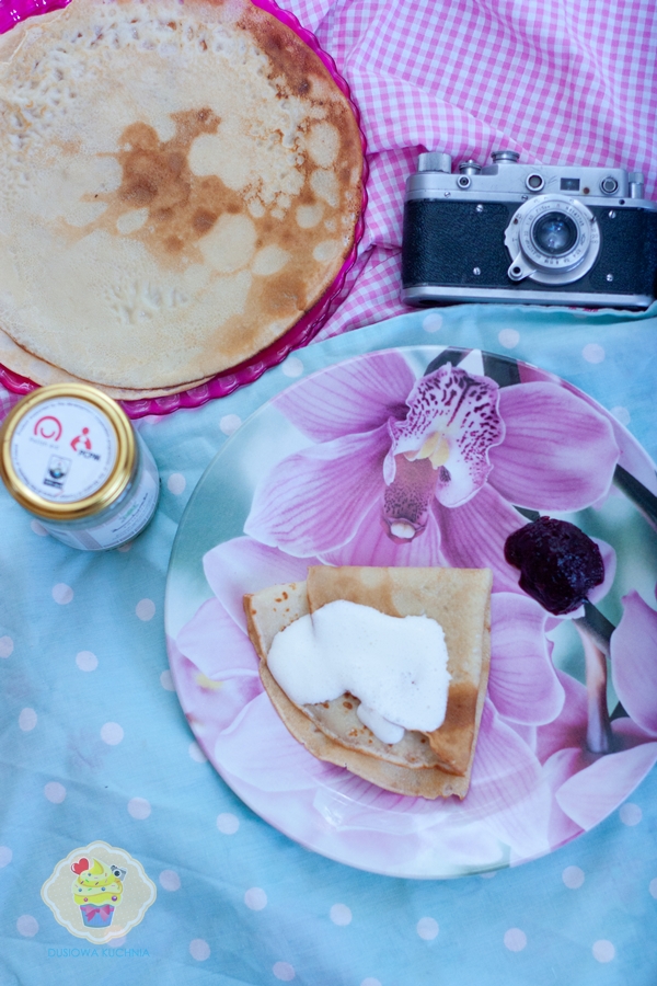 Podgrzewać około 2 minut, skropić olejem drugą stronę i przerzucić placek aby pogrzał się z drugiej.