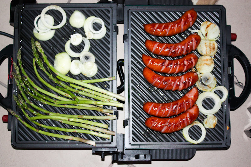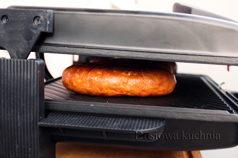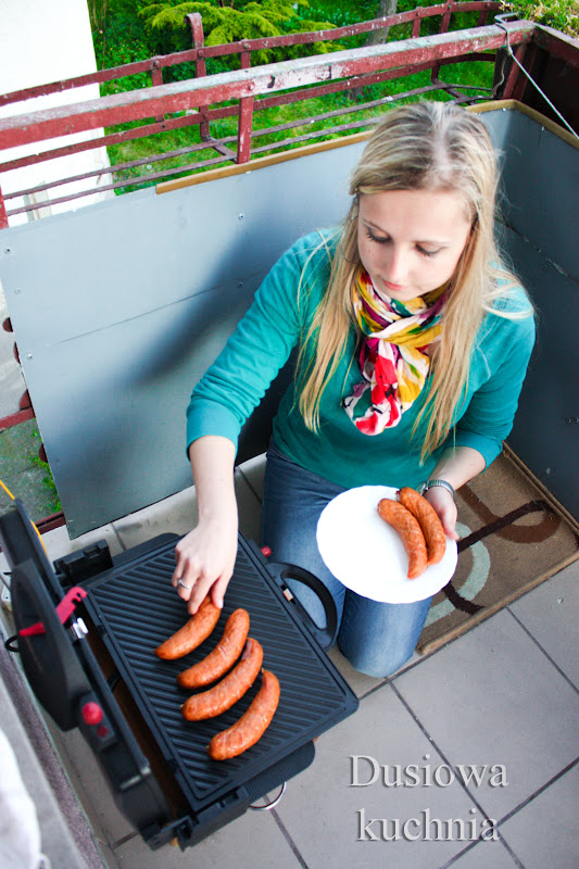 Możemy grillować w ten sposób-zaletą jest to, że płyta górna nie dotyka i nie zgniata kiełbaski.