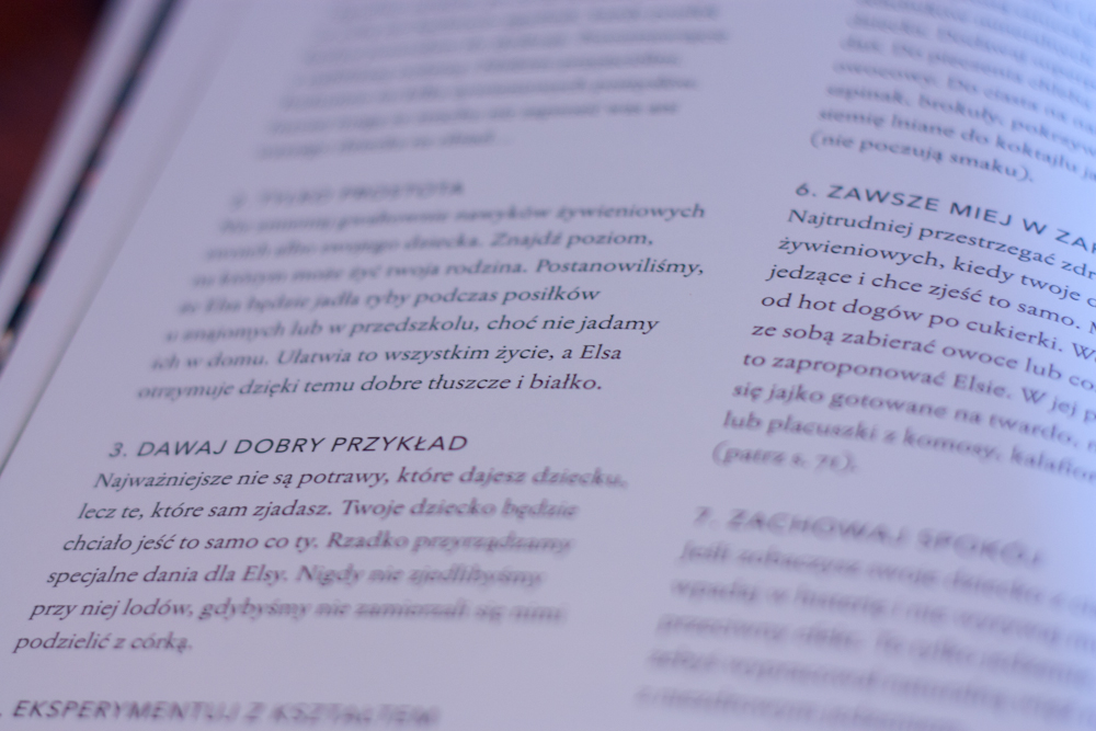 Na początku książki jest opis super zdrowych produktów, bardzo ważny dział dla początkujących ze zdrowym odżywaniem. Spodobał mi się też dział „zdrowy początek” z radami jak zapewnić dzieciom zdrowe odżywanie.