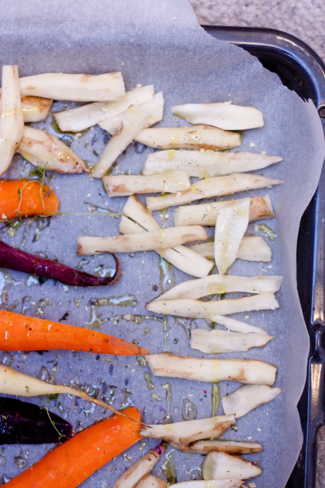 Na podstawie książki przygotowałam pieczone słupki warzyw z przyprawami.