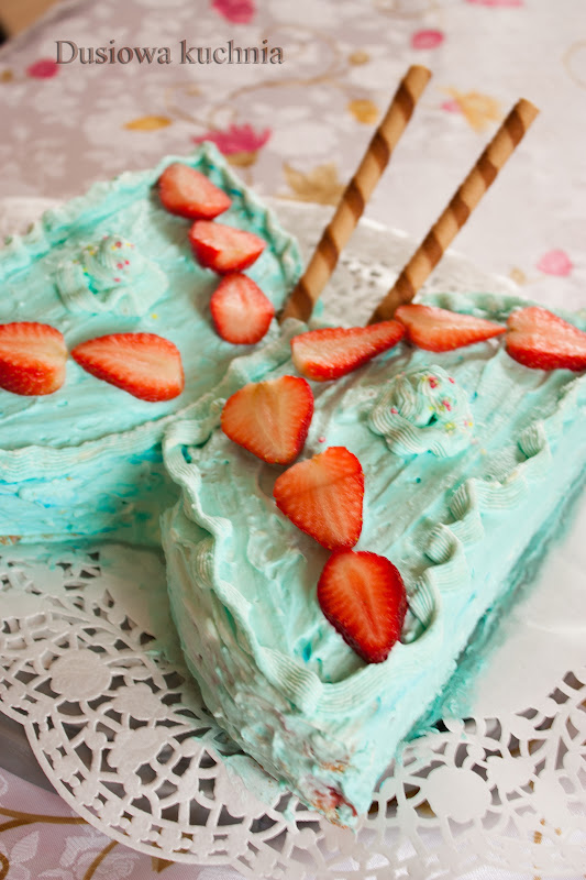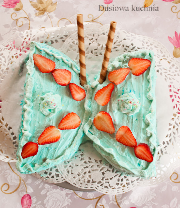 smerfowy torcik w kształcie motyla 🙂 cuuudo i na pewno pycha 🙂