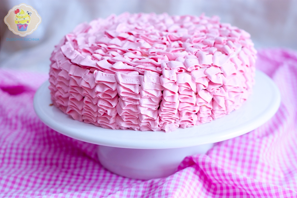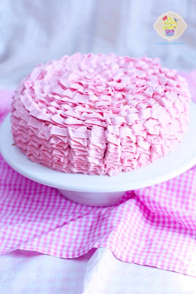 Tort z falbankami i truskawkami