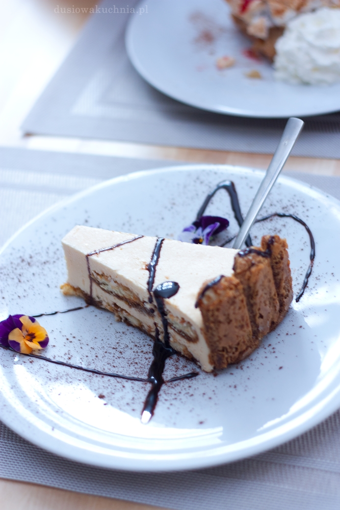 W kracie skusiło się nas tiramisu z owocowym musem (16 zł). Okazało się, że jest to lodowe tiramisu z dobrze nasączonymi kawą biszkoptami – naprawdę dobre, ale owoców nie wyczułam.