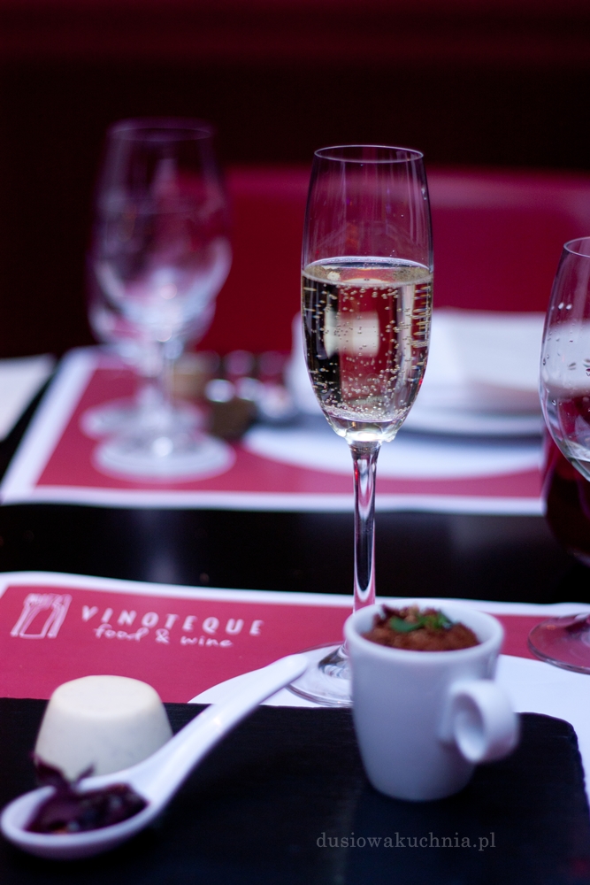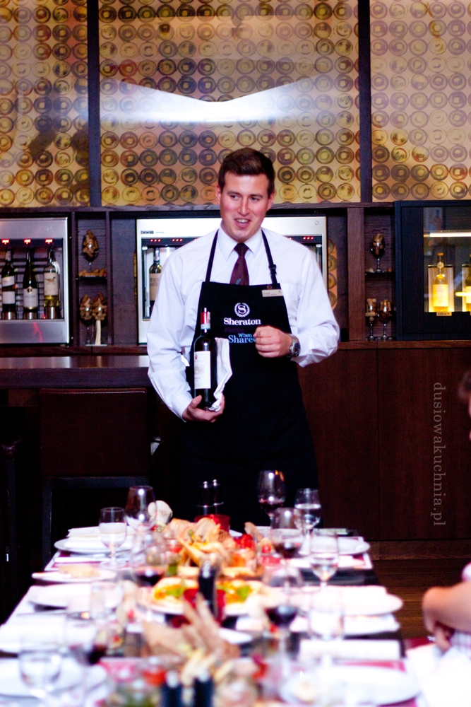 Na początek kolacji degustacyjnej szef kuchni Krystian Szidel przygotował na ciepło amuse bouche w postaci koziego sera owiniętego szynką parmeńską i podanego na fidze z kiełkami czarnuszki i dwoma musami, w tym jednym z buraka. Początek zaczął się bardzo obiecująco. Całości dopełniło wyśmienite Prosecco (Col de Salici Valdobiadene Prosecco Superiore Brut 2014 ). O doborowe wina podczas naszej kolacji zadbał sommelier hotelu Sheraton Andrzej Strzelecki, który ma niesamowicie bogatą wiedzę na temat win, ale też z wielką przyjemnością się nią dzielił z gośćmi.