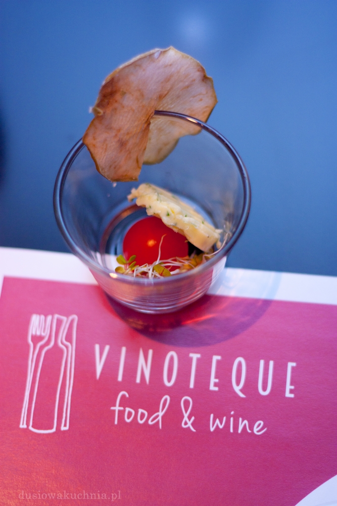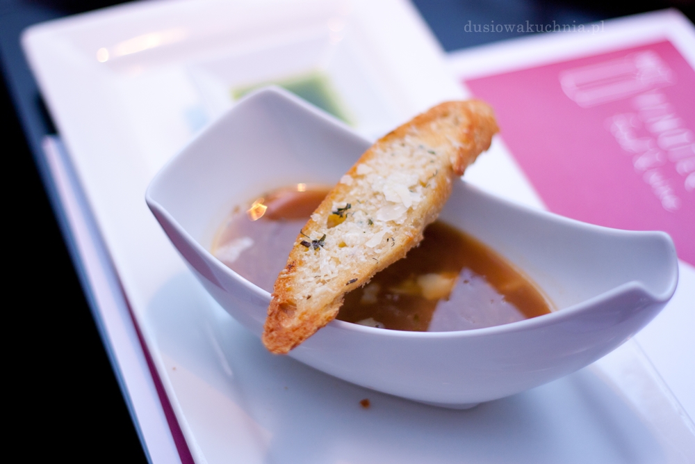 W Winotece zupa cebulową (25 zł), którą podaje się z grzanką ziołową i parmezanem, przygotowywana jest oczywiście na winie. Niesamowicie mnie zaskoczył bogaty smak, tak prostej zupy – słodycz od karmelizowanej cebuli, kwasowość od wina i ziołowe aromaty na pewno Was również zaskoczą.