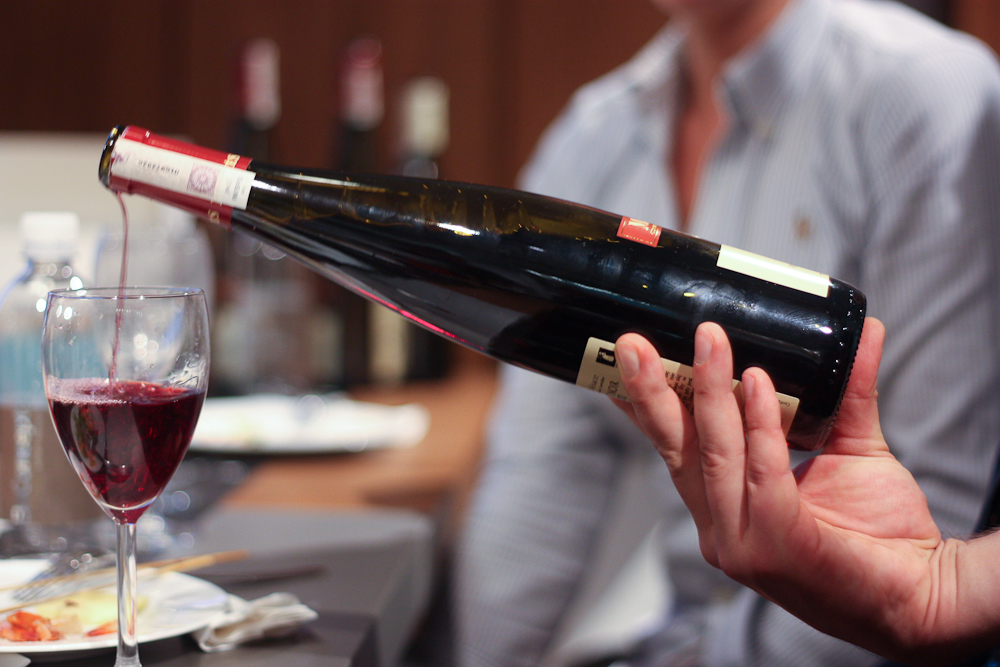 I przyszła pora na drugą część degustacji, którą rozpoczęliśmy francuskim oryginalnym czerwonym, wytrawnym winem Domaine Moltes, ze szczepu Pinot noir (trudny do uprawy) – bardzo eleganckie wino, na pewno pasuje do dziczyzny.